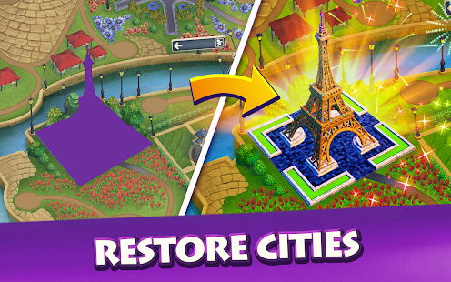* Combine and build to explore and restore over 100 cities! Spin the globe