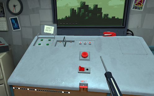 Please Don’t Touch Anything 3D can be called a remake, reissue, upgraded version, etc., but it’s still a cool puzzle game that has captured the hearts and minds of many gamers for its simplicity and sound. originality. The red button in the old place, like the instructions, the colleague also goes about his business, and the hands of the main character continue to itch to press something. But now he has a whole room for it, filled with interesting stuff, which promises an unpredictable but exciting result. Covering for a coworker taking a bathroom break, you find yourself in front of a mysterious console with a green screen showing a pixelated live image of an unknown city. A ominous red button is also present with the simple instruction not to touch anything!