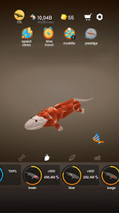 Idle Evolution – from Cell to Human – an excellent representative of clickers, who will please by its originality, its quality of manufacture and other factors interesting for the players. They will be engaged in the evolution of man from the very beginning until today. From the simple cell to homo sapiens. In this case, it is necessary to act in detail and without too much haste. This will allow you to better know this subject and not be bored. Unique opportunities, bonuses, improvements, opening new horizons, creating a collection of intermediate stages and much more await their arrival. Well, beautiful graphics leave only the most positive impressions. In the Idle human evolution game, you will see a unique creature enhancement system. Excellent graphics of game objects, a new experience in the creation of a living organism. In this skeleton game, it is possible to collect fish, viruses, people and animals. Tap tap clicker is already waiting for you! Your goal is to accumulate a lot of cells, one, two, three and, therefore, there are already a million of them, from which you create organs, muscles and the whole body.