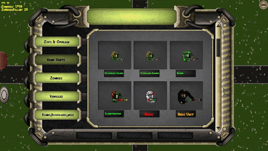 This paid version includes “cops, citizens, barricades to block hordes of zombies, isolated zombies, zombie spawners, army men, a controllable hero, a zombie boss if your hero dies, controllable army men and many other features for people who pay. ”