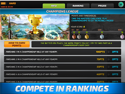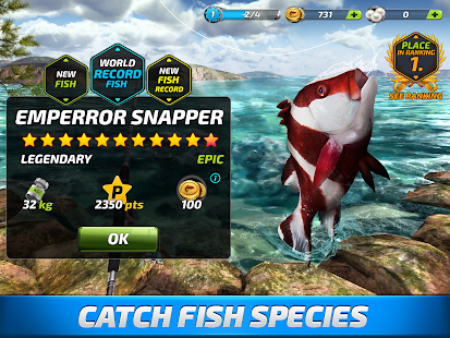 *Visit large realistic and animated fisheries (Florida Coast, Guntersville, Amazon River, Loch Ness, Great Barrier Reef, Mekong River, etc.).