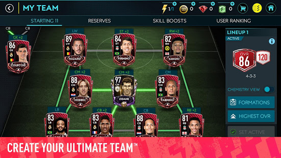 Build your Ultimate team with any Premier League, Liga, League 1, Bundesliga, Serie A, MLS, etc. player, then train any player to become a superstar. Create your team using football players from the same country, league or team to improve their chemistry and put your starting lineup at the top of the rankings.