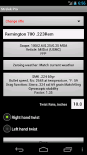 This smart ballistic calculator can use G1, G7 and … custom drag functions! It can use Lapua radar data! Can calculate spin drift, gyro stability factor and vertical deflection of the crosswind. Support Kestrel DROP environmental data loggers (for Android 4.3 and newer with Bluetooth 4.0)! Supports WEATHERmeter Weatherflow
