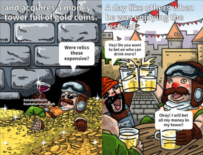 Money Tower Saga (Idle RPG) is a funny and a little crazy clicker with RPG elements, original illustrations, as well as a variety of events in the game space. The protagonist will be a once prosperous adventurer who has found a collection of unique artifacts. Their sale gave him incredible wealth. But the mountains of gold have been lost because of a stupid bet on alcohol fumes. Now he is without anything again. This pushes him to set off again to meet unforeseeable situations on the way of someone who is looking for adventure and problems of his own head in order to one day discover a treasure that has not been touched by anyone.