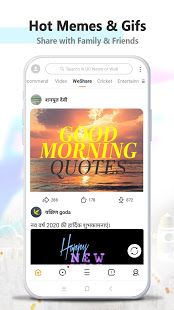 UC Browser allows you to search and share fun videos, status videos, trend videos, etc. There are also features like fast download, data logging, ad blocking feature and helps you access cricket music, videos and information with a smooth experience. The cricket channel is now very popular on UC Browser.