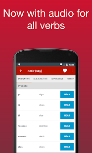 Now with audio !! You don’t know how to pronounce a verb? You can now hear how each verb is pronounced. Just press the button next to the conjugation. Verbs with audio have a speaker symbol next to them. Note: this feature requires an internet connection.