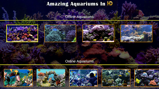 Incredible aquariums in HD for your Android TV and tablets, offering a large selection of aquariums to choose from online and offline, perfect for relaxation.