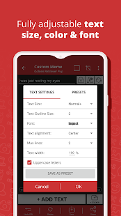 * Personalized meme support allows you to use any image from your device