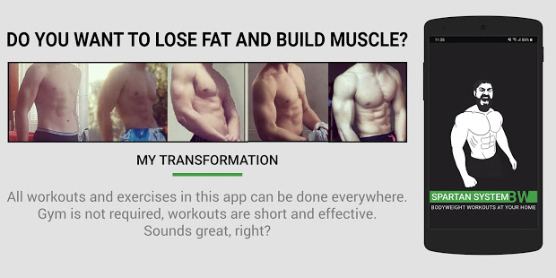 Get in shape with Spartan Bodyweight, no equipment required! A few minutes a day to develop your muscles and lose belly fat at home. Simple, high*quality workout routines for beginners and athletes. Each workout is followed by video, with a set of sample session instructions training, with timer and representatives.