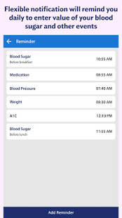 * A flexible notification will remind you daily to enter your blood sugar value and other events