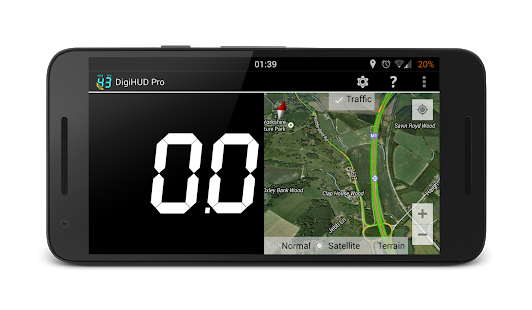 The DigiHUD Pro Speedometer is a GPS-based digital head-up display (HUD) that displays and can record useful speed and distance information for your trip. Ideal if the speedo of your vehicle is dead, you want to check the speed of your vehicle or you just need to know your speed when you are cycling, running, flying, sailing, etc.!