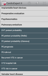 Program for advanced cardiologists includes additional scores for PCI, catheter ablation, pulmonary embolism, infective endocarditis, stroke, syncope, critical care, mental disorder, menopause , acute kidney damage and other useful tools.