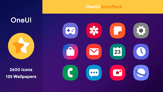 This icon pack is based on the new OneUI style. It contains more than 2600 icons and more than 135 wallpapers. To use this icon pack, you need a launcher that supports themes like Nova, Apex, Evie to apply themes. This icon pack is not compatible with Samsung. Launcher and Google Launcher