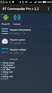 This Bluetooth terminal app allows you to set commands and send them simultaneously to multiple connected Serial Port Profile (SPP) or Bluetooth Low Energy (BLE) devices. The remote device can be an Arduino board, a phone, a computer, or any other device that has a Bluetooth module (HC*06, etc.) or a device that has a Bluetooth device. The application can also listen to incoming messages and display them in HEX, string or decimal format.