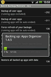 Titanium Backup is the most powerful backup tool on Android, and more. You can back up, restore, freeze (with Pro) your applications + data + market links. This includes all protected applications and system applications, as well as external data on your SD card. You can perform batch and scheduled backups in one click. Backups will work without closing any application (with Pro). You can move any application (or application data) to / from the SD card. You can browse the data of any application and even query the market for detailed application information.
