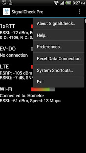 SignalCheck allows users to check the actual signal strength of their connections. Unlike standard Android signal bars, which usually only display 1xRTT signal strength (Signal and data at low speed), SignalCheck displays detailed signal information for all connections on your device, including 1X, GSM, EV*DO or eHRPD (3G). ), LTE (4G) and Wi*Fi.