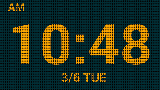This app is a style of LED marquee sign.It is a dock clock, a desktop clock and a night clock app.No alarm No widget. It’s big and simple. It is easy to use. It simply shows you the time (hour, minute, second) and date (month, day). You can also change the text color and the background color.