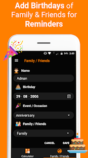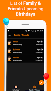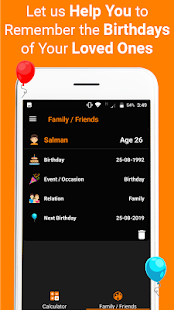* The age calculator works as a reminder of the birthday or anniversary date of your family or friends