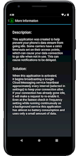 This app was created to prevent your phone’s data stream from becoming inactive. Some carriers have strict timeouts set on their access points, which can make your data connection idle when not in use. This can delay notifications.