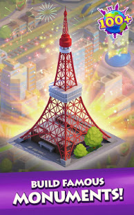 * Combine and build to explore and restore over 100 cities! Spin the globe