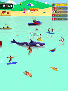 Shark Attack – three-dimensional action game in which the player will control a bloodthirsty shark slayer. Taking control of a marine predator, the user will go to different places where you can catch a lot of innocent victims. Among the places where you can swim a shark, be like the depths of the ocean and crowded beaches. The predator can also eat its young parents. Caught the victim will become magnifies the beast, as well as replenish your account balance. Points earned will help unlock new characters, slide your finger across the screen to move your shark. Make your shark stronger and bigger by eating as many people as possible as well as other sharks.