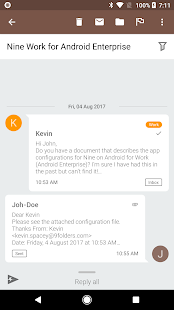 Nine is a complete email application for Android based on Direct Push technology to synchronize with Microsoft Exchange Server using Microsoft Exchange ActiveSync, and also designed for entrepreneurs or ordinary people who want to communicate effectively with their colleagues, friends and family members anytime, anywhere.
