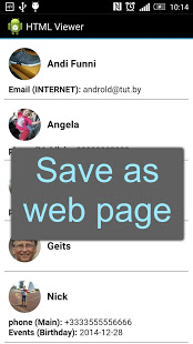 The application allows you to open files with the extension for importing contacts .vcf (vCard) as a phone book to add and modify contacts, make calls. It can be used as an alternative to Android contacts.