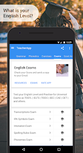 TeacherApp – Written by Professors.Grammar & Phonetics with audios, exercises, downloads and exams. This application will allow you to work in a simpler and more efficient way. You will be able to review grammar rules and time use more clearly with many examples to help you understand. List of irregular verbs available.This application offers the necessary tools to write compositions, texts, sentences, essays, etc., using a vocabulary common through sections such as pronouns, connectors, adjectives, adverbs, names and the translator.