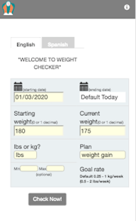 If you follow the right diet or weight loss / gain diet, it will make you lose (gain) weight at the ideal rate. This app will help you know if your plan is working effectively and will give you the option to reformulate your plan or change it to a more effective plan.