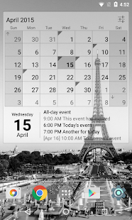 A simple but highly customizable calendar widget that combines the monthly view with the calendar view. It gives a good overview of your events on your home screen. Separate widgets (month and calendar only) are also available.