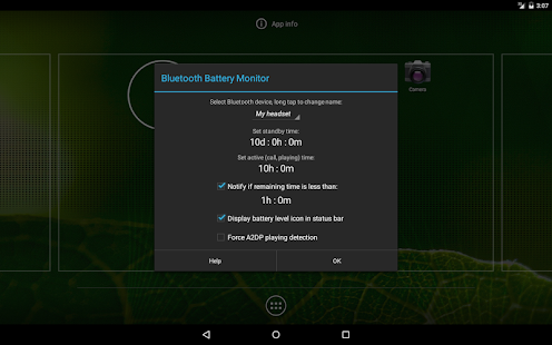 Bluetooth Battery Monitor * is a widget*only application that provides you with an estimate of the battery level of your Bluetooth headset (or other device) and calculates the remaining battery time. To calculate these values, the widget monitors the activity of your Bluetooth device and uses the active time and sleep time that you must enter on the setup screen. You can use these values in your Bluetooth device’s user manual or specifications, or use the widget itself to count the active time.