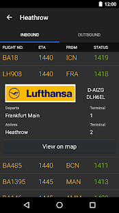 Plane Finder shows planes in motion on a world map. The map display is front and center, offering breathtaking views of air traffic and quick access to features. Plane Finder is ranked in the highscore category since 2009. Search by flight number, name of place, airport, airline and plane or browse the maps 23 different aircraft markers are included and the logos of the airlines are displayed next to the planes for easy identification. Simply press an airplane to view detailed flight and plane information, including photographs, or an airport to view live departures and departures.